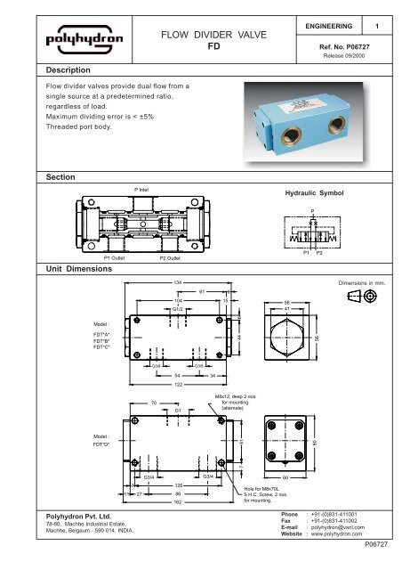 Fc 0 30 Gpm Full Range Pressure Compensating Variable Flow Control Brand Hydraulics Product Information